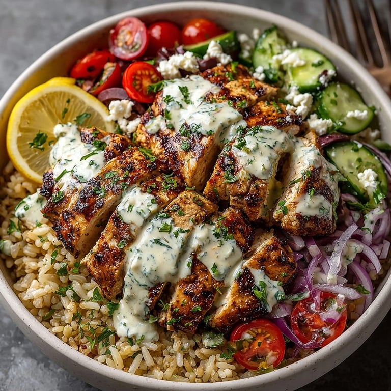 This recipe welcomes many adaptations based on dietary needs or what you have available. For a plant based version, replace chicken with roasted chickpeas or marinated tofu using the same seasonings. Cauliflower rice makes an excellent low carb base instead of brown rice or quinoa. If tahini isn't available, try using Greek yogurt mixed with olive oil and lemon for a different but equally delicious sauce. For those avoiding dairy, simply omit the feta or use a plant based alternative. The versatility of this recipe means you can adapt it countless ways while maintaining its Mediterranean spirit.
