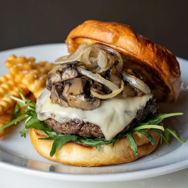 I first made these Mushroom Swiss Burgers for a backyard family get-together, and they quickly became a requested favorite. The waffle fries, golden and crispy, make an irresistible side that everyone loves to snack on even before the burgers are ready.
