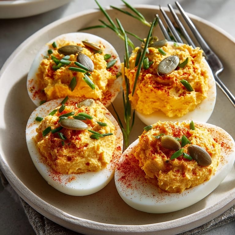 Save Smoked paprika has become my star ingredient for deviled eggs because its earthiness ties the pumpkin and curry together. Crackling eggs with my kids and watching them help with garnishes is now a tradition I really treasure every autumn.