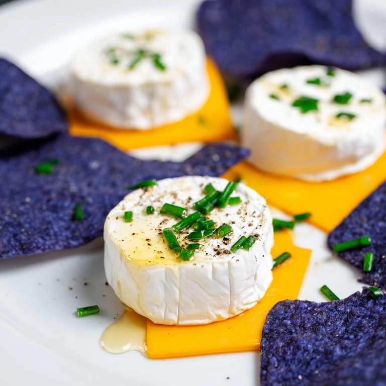 Save My friend Sarah called it "the appetizer that makes people smile before they even taste it." She was hosting this dinner party where the usual cheese board felt tired, so we rearranged everything into these little stepping stones across a sea of blue corn chips—and suddenly it wasn't just cheese anymore, it was a tiny edible landscape. The goat cheese, brie, and smoked gouda became this playful trio of textures, and watching guests navigate those "stones" with genuine delight made me realize presentation can be just as nourishing as flavor.