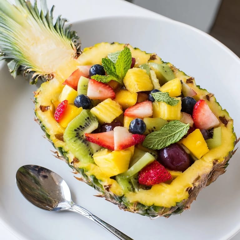 Save A vibrant and refreshing fruit salad served in a pineapple boat, perfect for summer gatherings or as a show-stopping brunch centerpiece.