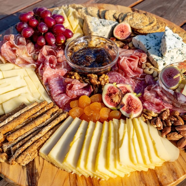 For a vegetarian board, simply omit all meats and replace with marinated olives, roasted peppers, or grilled vegetables. Feel free to swap nuts and fruits according to seasonal availability or personal preference, and consider adding chocolate or candied nuts for a touch of sweetness that complements the cheese.