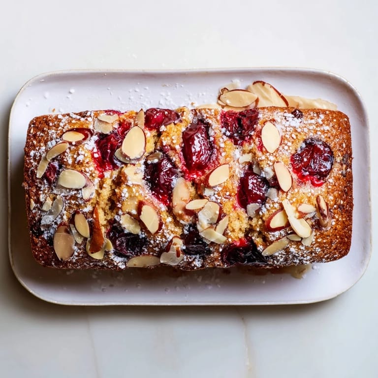 I first baked this loaf cake for a holiday brunch, and it quickly became a family favorite with its tender crumb and bursts of cherry in each slice.