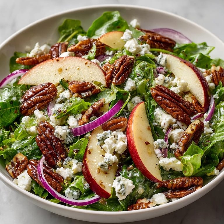 Save This crisp and refreshing apple pecan salad brings together the perfect balance of tart apples and toasted pecans, all elevated with an unexpected twist of pickle vinaigrette that transforms an ordinary salad into something truly memorable. I discovered this combination during a fall harvest dinner when looking for ways to use the abundance of apples from our local orchard, and it quickly became a year-round favorite.