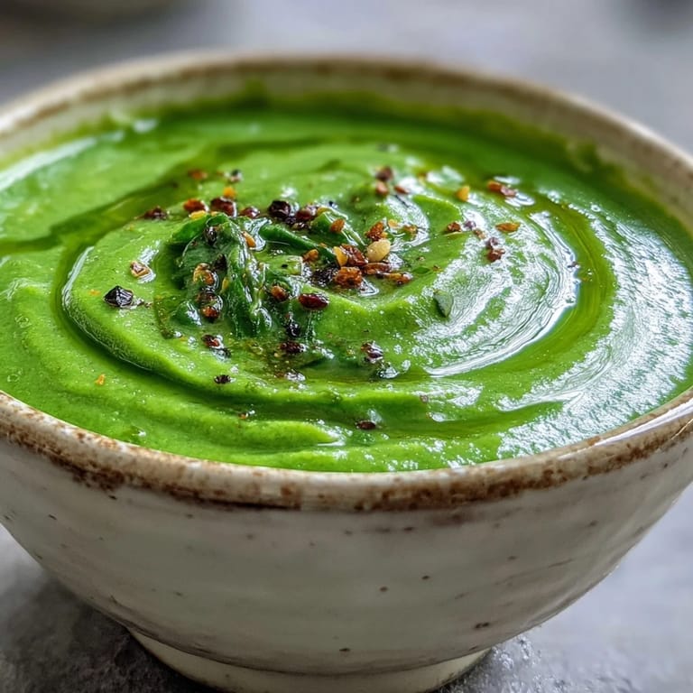 Save There's something almost magical about the moment a pile of green vegetables transforms into something so silky and nourishing you actually want to drink it straight from the bowl. My sister showed up one gray Tuesday afternoon feeling utterly depleted, and I had nothing but what was hiding in my vegetable drawer—broccoli getting slightly wrinkled, some asparagus, a bag of spinach I'd been meaning to use. An hour later, she was holding a steaming mug of this emerald soup, and I watched her shoulders literally drop as she took the first spoonful. That's when I realized this wasn't just lunch; it was somehow medicine disguised as comfort.