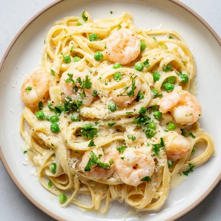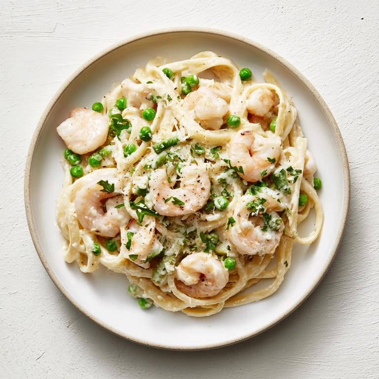 Contains: Shellfish (shrimp), Dairy (cream, butter, Parmesan), Wheat (pasta). May contain traces of gluten if using regular pasta. Always check labels for allergens.