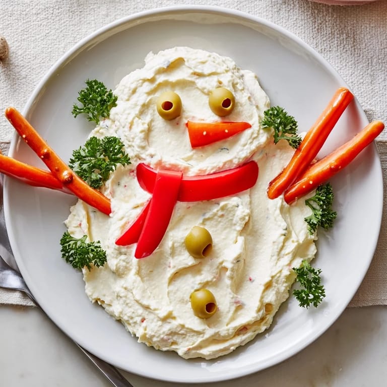 - Decorations & Garnishes: 2–3 black olives (for eyes, buttons, mouth), 1 small carrot (for nose, cut into a small carrot nose shape), 1 red bell pepper (for scarf, sliced), 1–2 pretzel sticks (for arms), Fresh parsley or chives finely chopped (optional for color)