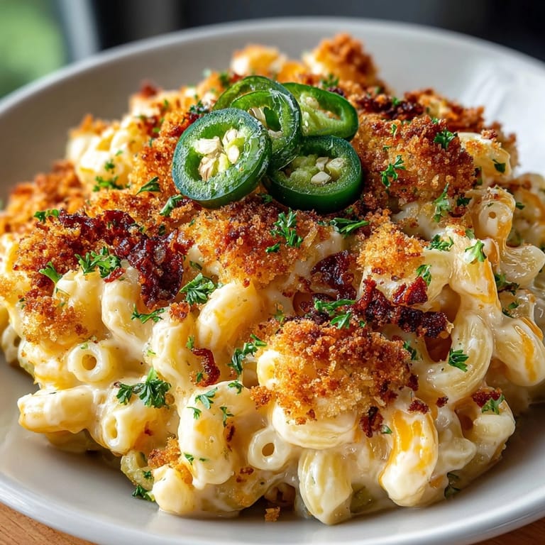 Save This creamy, spicy jalapeño popper mac and cheese bake has transformed our family game nights into culinary celebrations. The unexpected addition of tangy pickles cuts through the richness, creating a perfectly balanced comfort food that disappears faster than I can serve it.