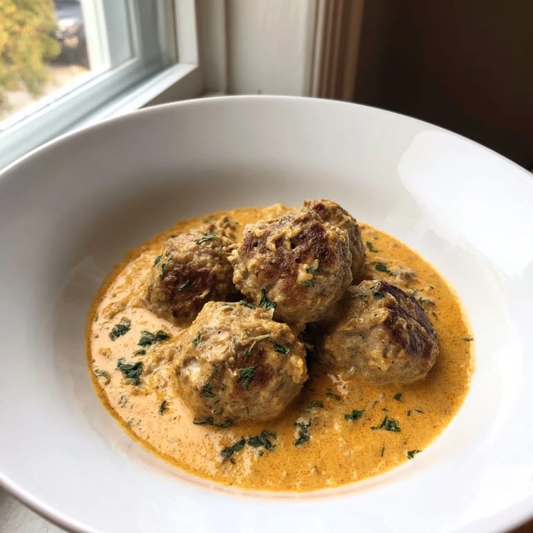 Save Tender turkey meatballs paired with a creamy, aromatic pumpkin sage sauce—perfect for a comforting autumn dinner.